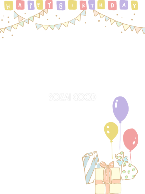 メッセージカード・風船・ガーランドのイラストフレーム はがきサイズ・A4 フレームの素材と。