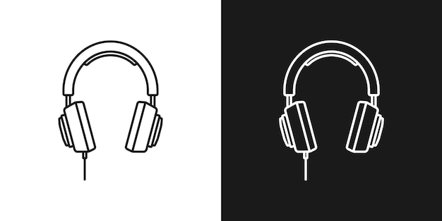 2つのシンプルな線形ヘッドフォンアイコンのセットです。黒と白のバリエーションで。Premiumベクトル素材。