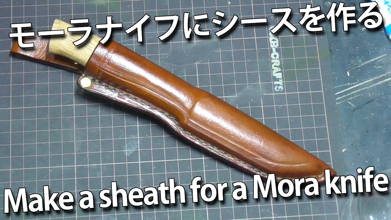 レザークラフト モーラナイフシースを初心者が作ってみた!初めてのレザークラフト モーラナイフ- YouTube。