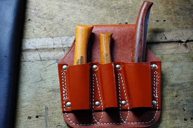 ナタ用レザーシース製作 キャンプザックにも収納出来るナタ用革シースをレザークラフト! - DIYレシピ情報サイトtsukuroもっと bymotto studio。