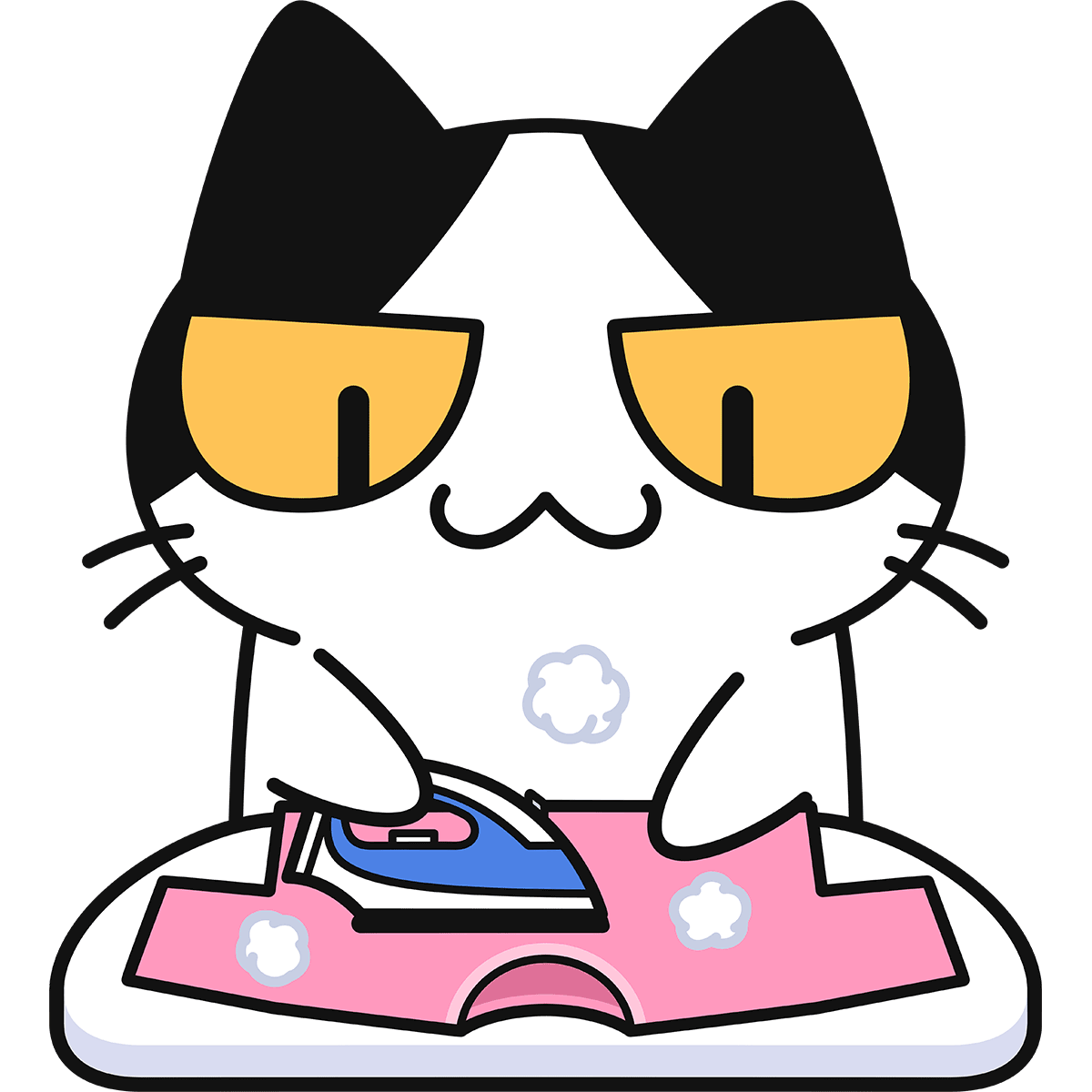 アイロンをかける猫無料イラスト&かわいいフリー素材集 ねこ画伯コハクちゃん。