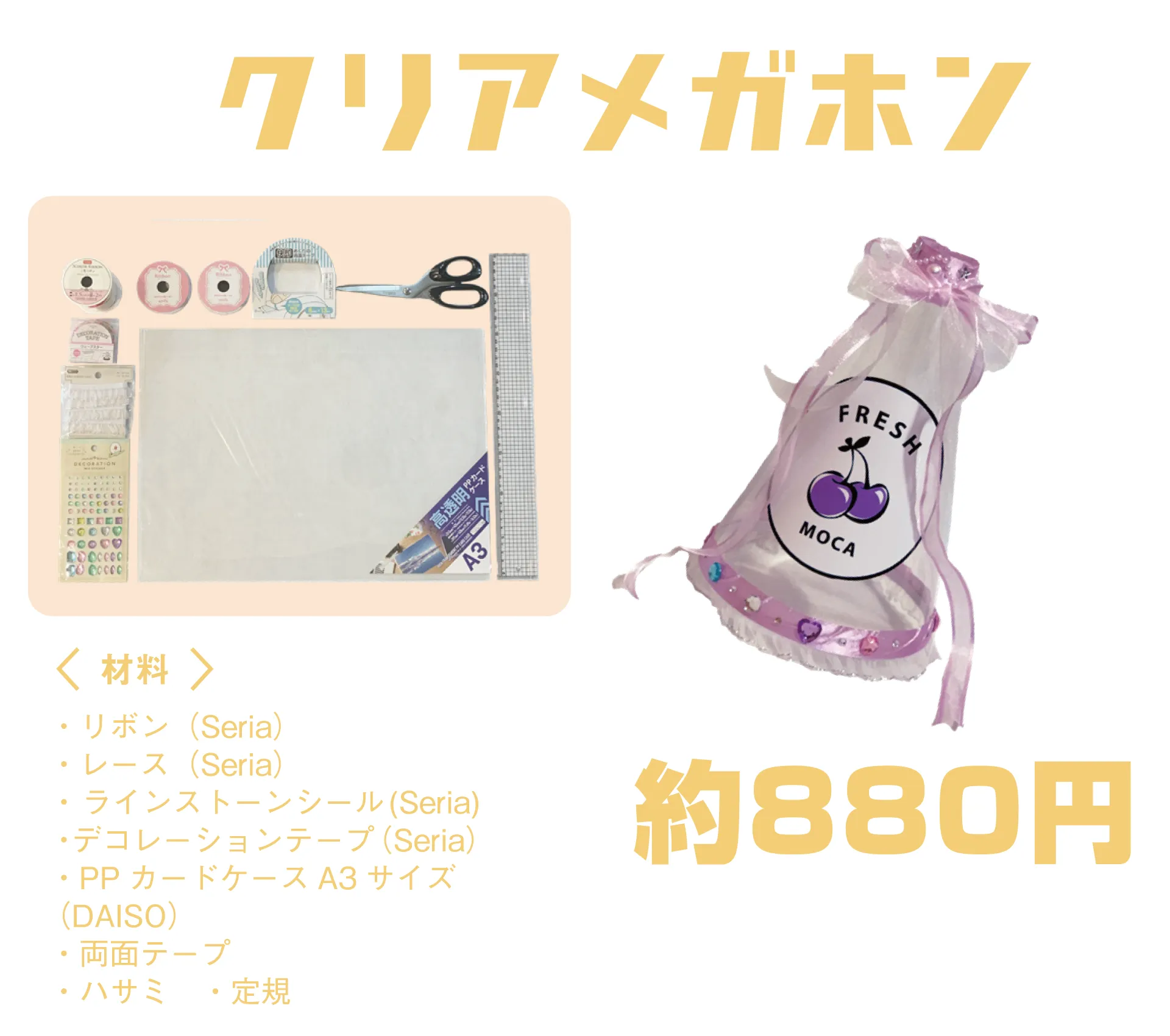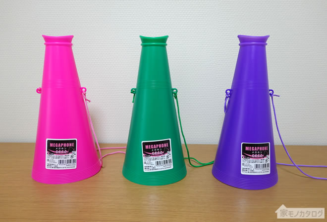 ダイソー、セリア等100均のメガホンを紹介!赤緑青白・ハート型40"s file ドットコム。