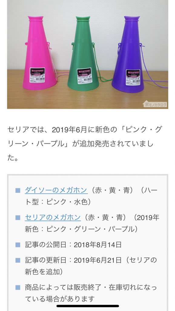 🐟🤍 on X: "セリアにグリーンメガホンあるっぽい ??黄緑がいいな~~けどかさばるな~荷物https:t.co dTgfc8S1kb"X。