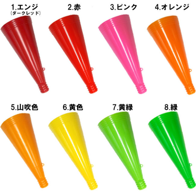 メガホン1個 赤、白、青、黄、緑、ピンク、オレンジ紅白。