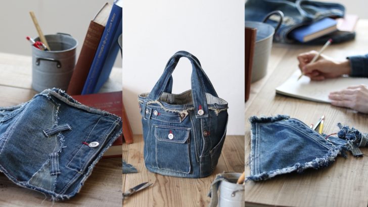 おしゃれなデニムバッグを手縫いでリメイクする方法!How to remake denim pants to a bag。