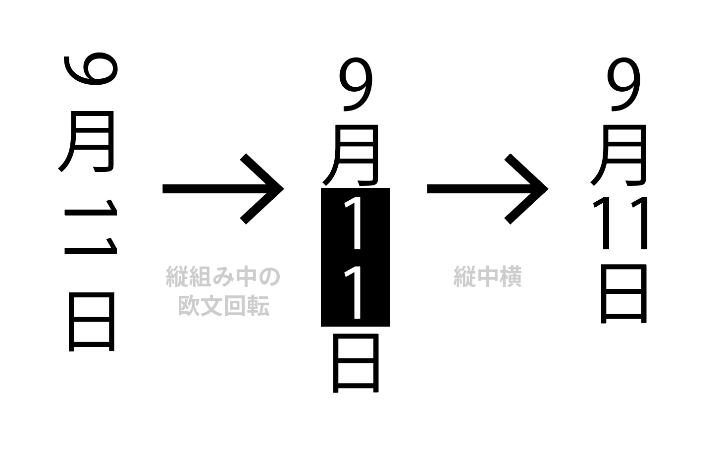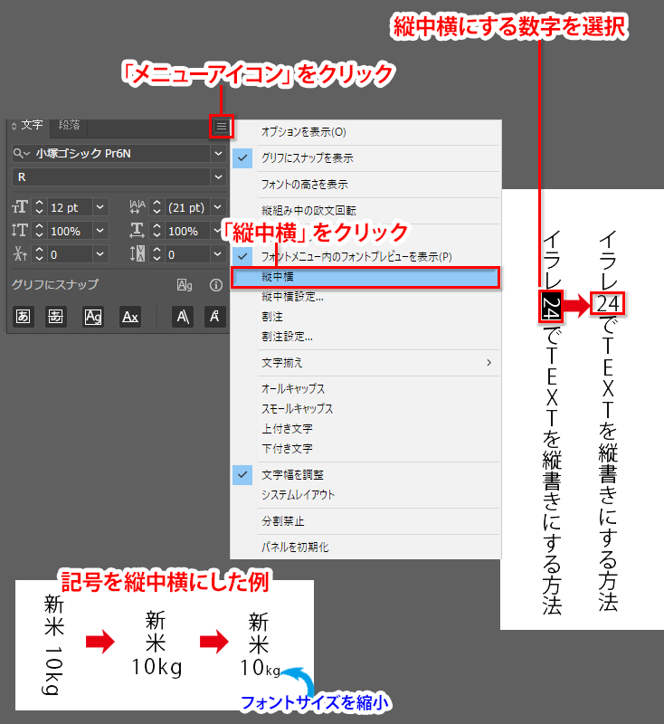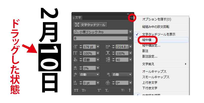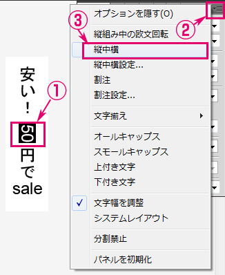 縦書きの途中で2桁の数字を見やすくする方法: Illustratorの使い方。