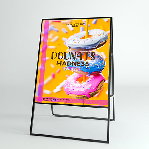 スクエア A型グリップスタンド A2 片面 看板 A2 屋外 イーゼル スタンド 店舗 スタンド看板 立て看板 a型看板 おしゃれ 看板 立て看板製作 屋外 スタンド看板 イーゼル おしゃれA型グリップスタンド ポスターセット A1サイズ片面+合成紙ポスター。