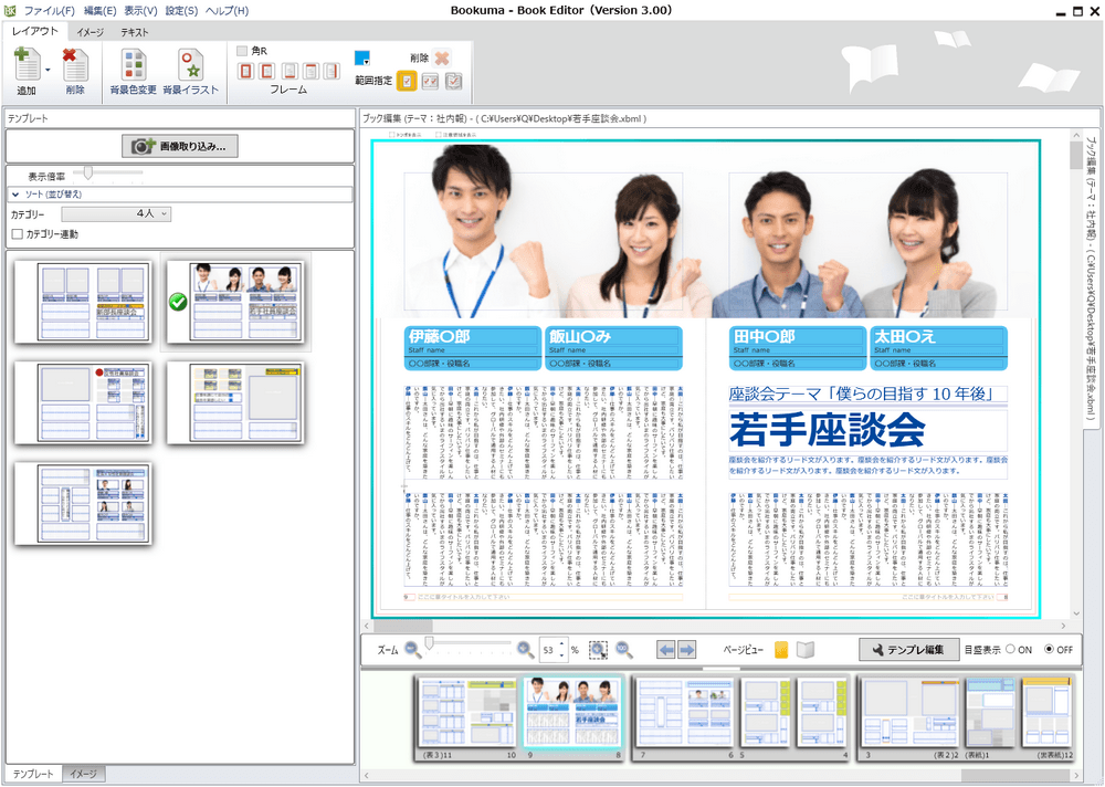 対談・座談会記事テンプレートとデザイン社内報・広報誌。