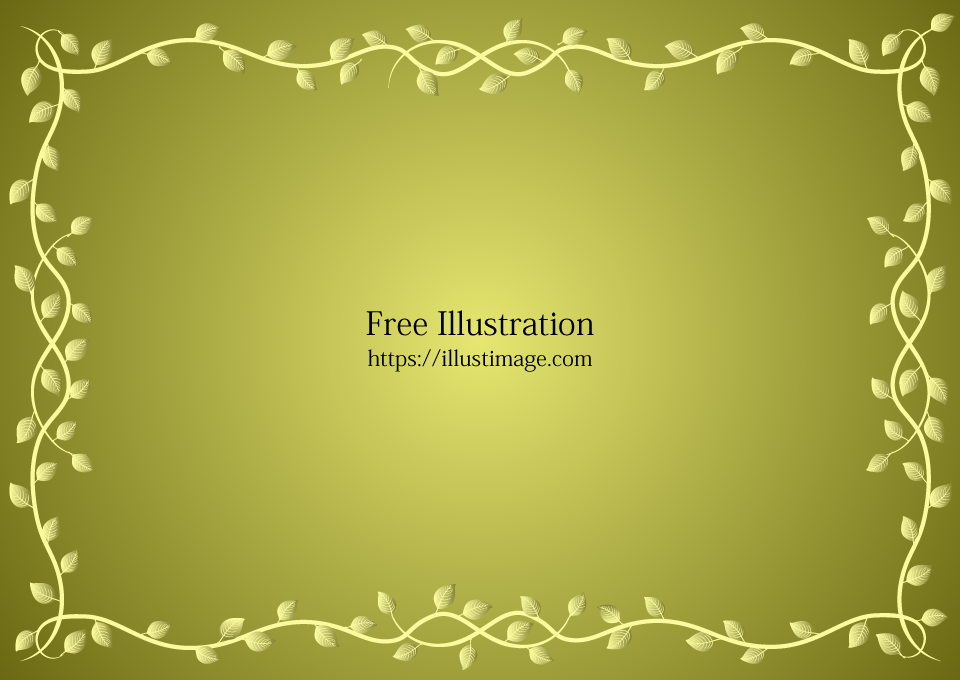 草木模様のゴールド額縁フレームイラストのフリー素材イラストイメージ。