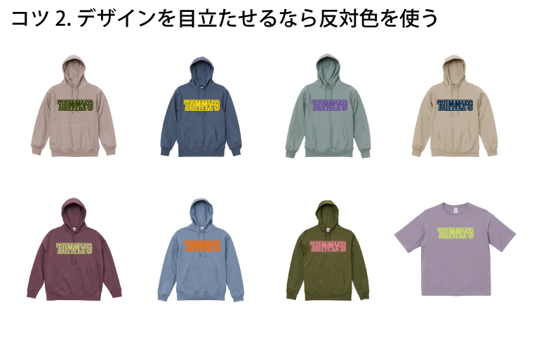 色の組み合わせを覚えて服を着よう!オリジナルTシャツ作成ならトミーズ。