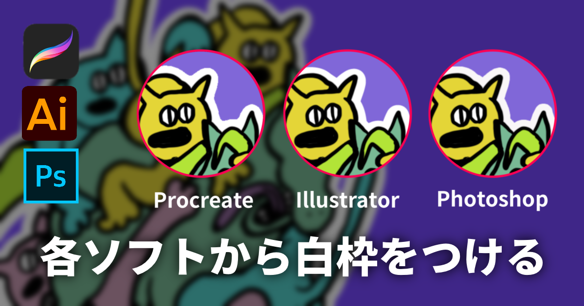 白枠の付け方3選 ProcreateiPad版IllustratorPhotoshopうーたみイラスト。