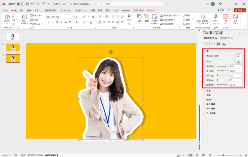 PowerPointで画像の人物に白枠をつけて雑誌風にする方法PPDTP。
