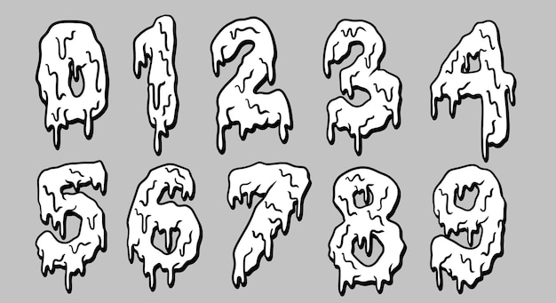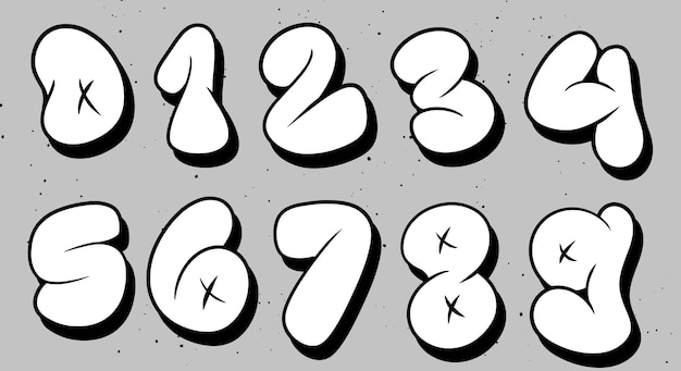 落書きスプレーペイントのスタイルの数字のセットPremiumベクトル素材。