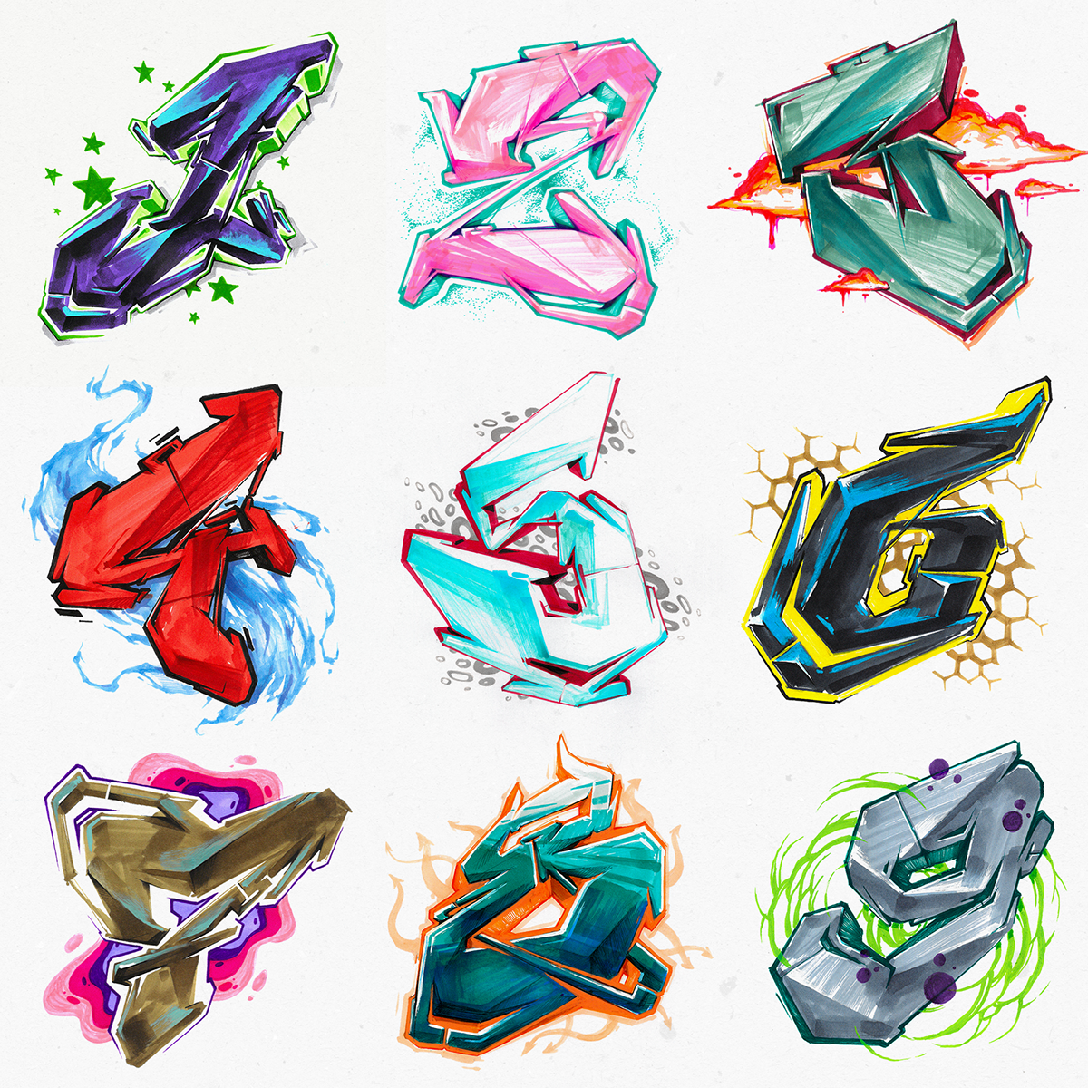 グラフィティ文字と数字 ストックベクター ©Binkski 56683511。