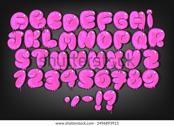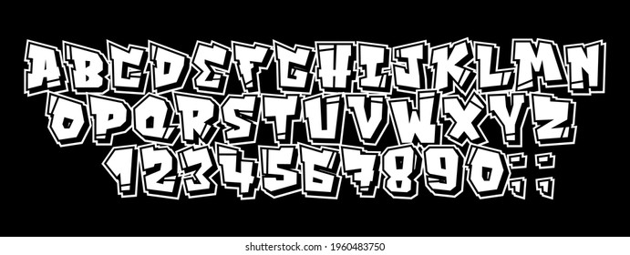 ヒップホップやストリートアートの落書きスタイルの文字と数字のベクター画像セット。 白い背景にグラフィティフォントを使用して簡単に操作できます。90年代の街頭文化と若者のサブカルチャー。」のベクター画像素材 ロイヤリティフリー1958373640Shutterstock。