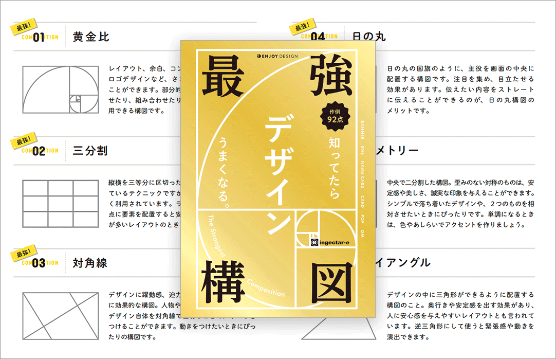 こんなデザイン書は初めて! 黄金比をはじめ、美しいと言われるさまざまな構図を使ってデザインするテクニックを学べる良書 -最強構図コリス。