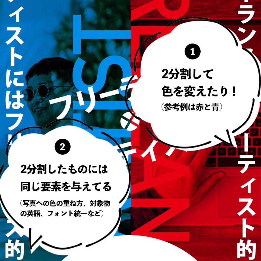 2分割のデザインはこれを意識しよう!2色の選び方や対比の作り方!デザイン研究所。