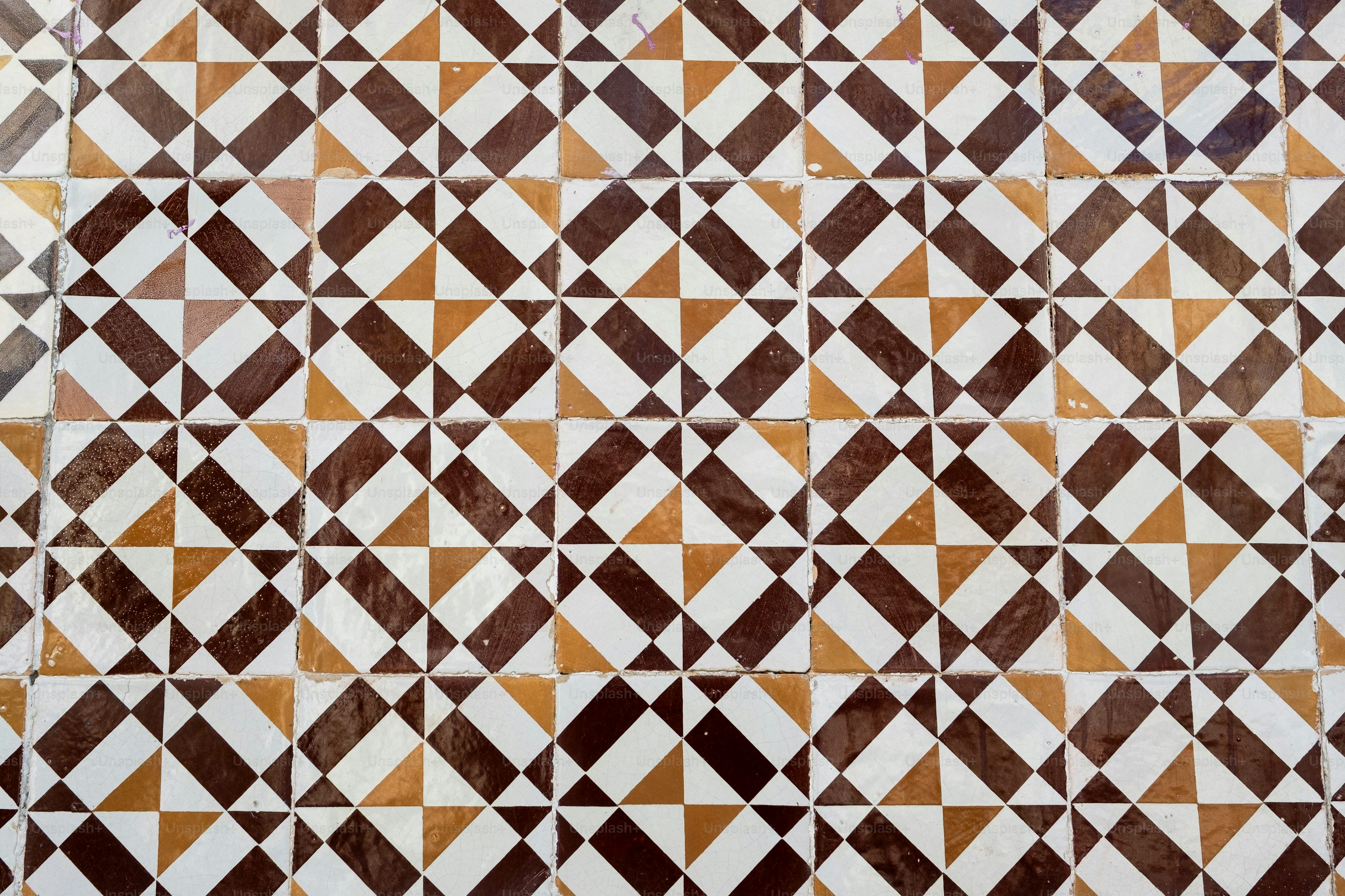 茶色とベージュのタイルの幾何学模様の写真 – Unsplashのパターンの画像。