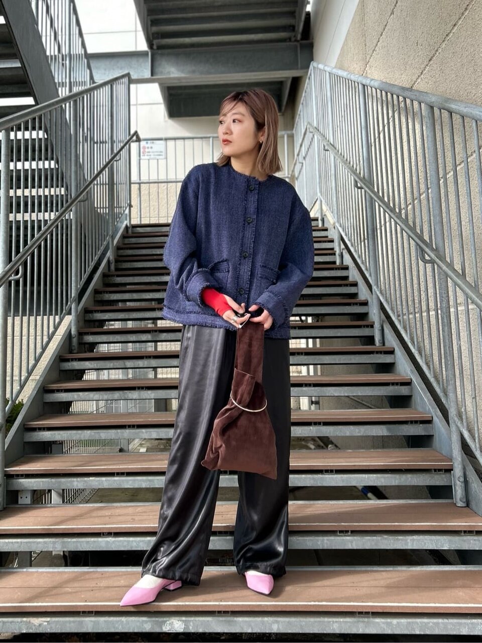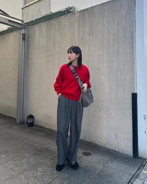 グレーとレッドのトレンドカラーで作るギャップコーデ❤️🩶。