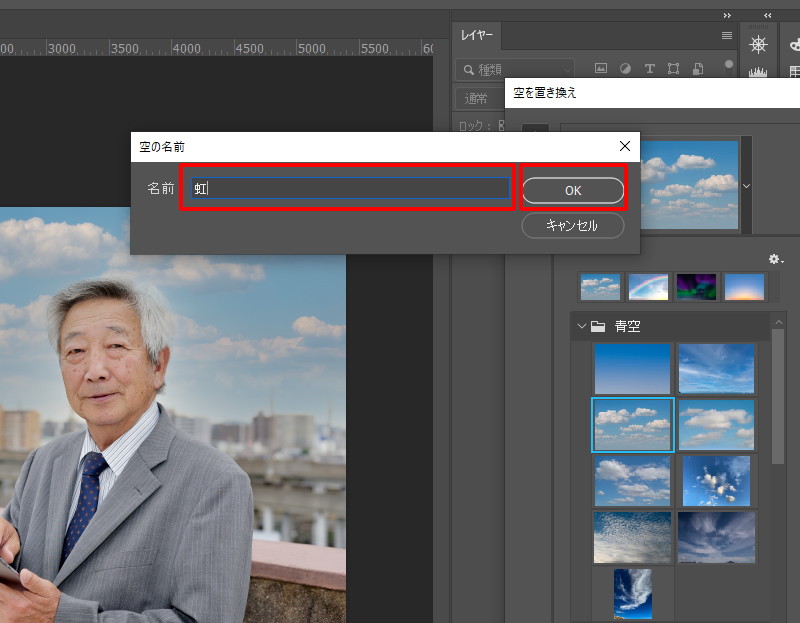 Photoshop フォトショップの空の置き換えで空を青くする方法 Adobemoku review。