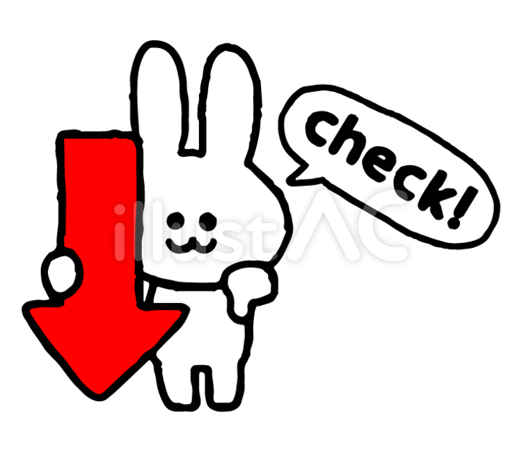 下方向の矢印を持つうさぎのイラスト:イラスト無料。
