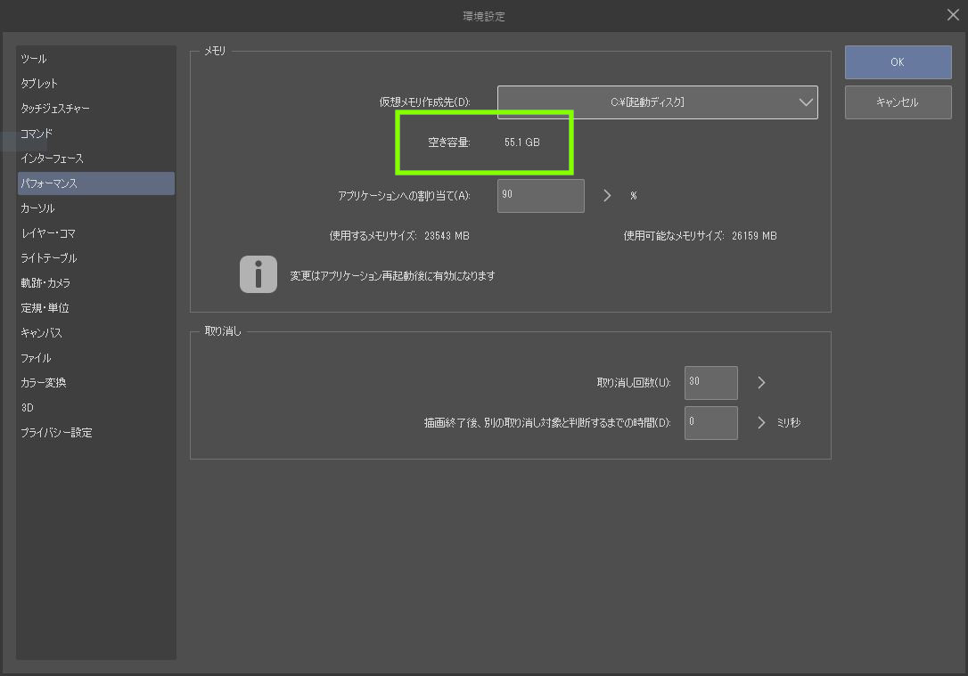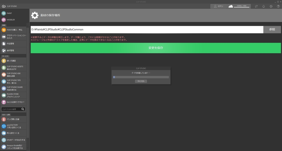 備忘録:HDD増設チャレンジ番外クリスタ素材の保存先変更編ふきのすけ。