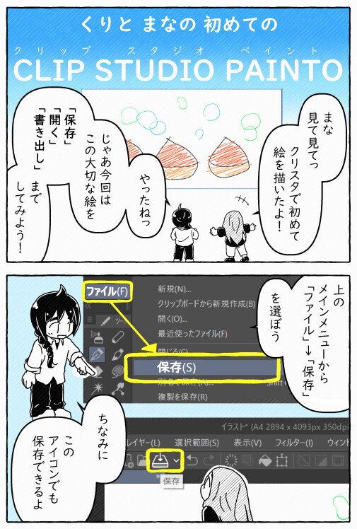 クリスタまんが 保存・閉じる開く・書き出しの簡単な方法は? あおしば てん。