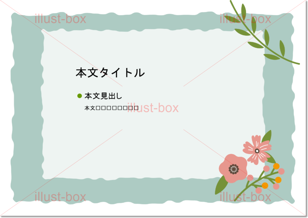 北欧風の花イラストフレームデザイン・おしゃれなパワポテンプレート・かわいい背景で自己紹介 イラストボックス「プレミアム」テンプレート。