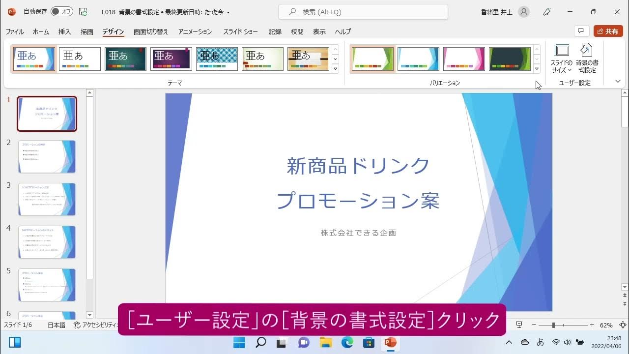 スライドの背景の色を変えるには PowerPoint 2021。
