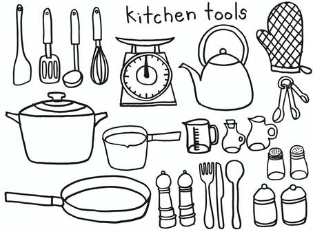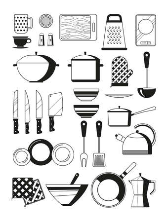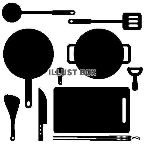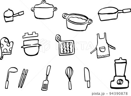 キッチン用品のモノクロイラストセットのイラスト素材98590888- PIXTA。