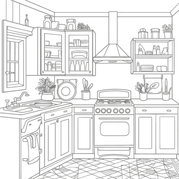 キッチンのぬりえページ キッチンの輪郭スケッチを描く ベクターイラスト画像とPNGフリー素材透過の無料ダウンロード - Pngtree。