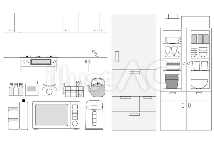 キッチンのイラストセット モノクロイラスト - No: 2342740無料イラスト・フリー素材なら「イラストAC」。