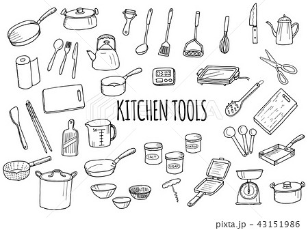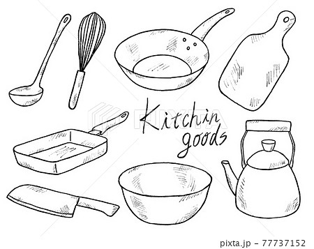 手書きのキッチン用品イラスト 白黒 のイラスト素材94390878- PIXTA。