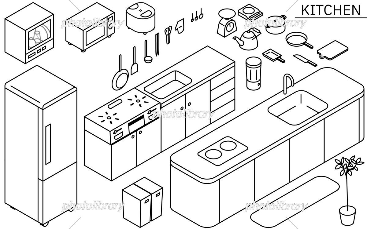 キッチン モノクロ ペン画のイラスト素材57198793- PIXTA。