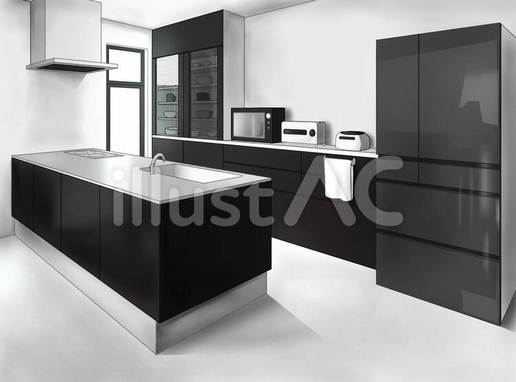 背景素材_モノクロキッチンイラスト - No: 1464538無料イラスト・フリー素材なら「イラストAC」。