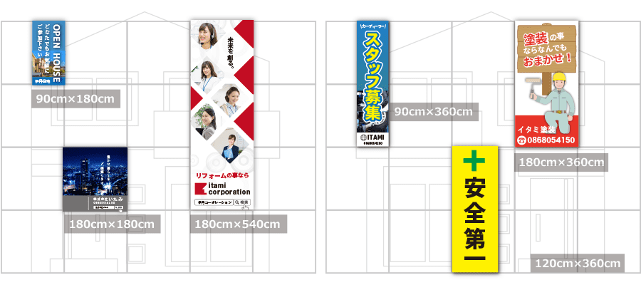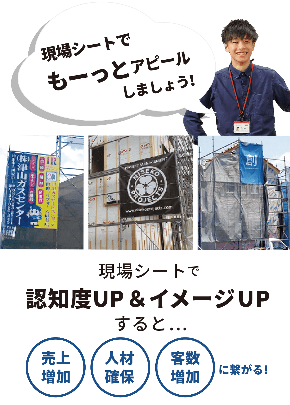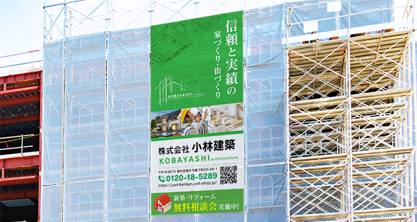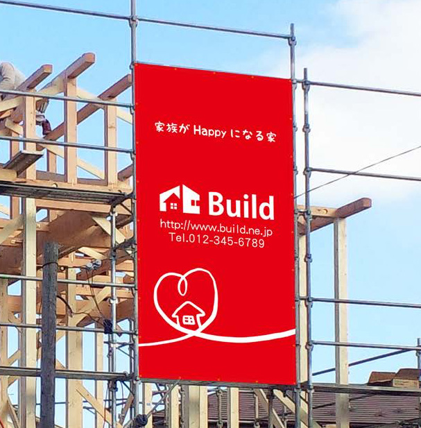 足場幕 現場シート <オーダーデザイン>建築のぼり旗 現場幕 現場シート 安全旗 建築業界の集客・販促支援商材ならスマイルサービスfor建築。