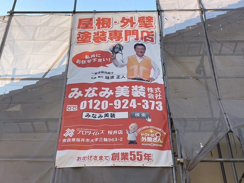 奈良県桜井市 みなみ美装 株 様事例 - 建築現場のイメージシート 現場シート・足場シート・養生幕のことなら建築現場のイメージシート 現場シート ・足場シート・養生幕のことなら。