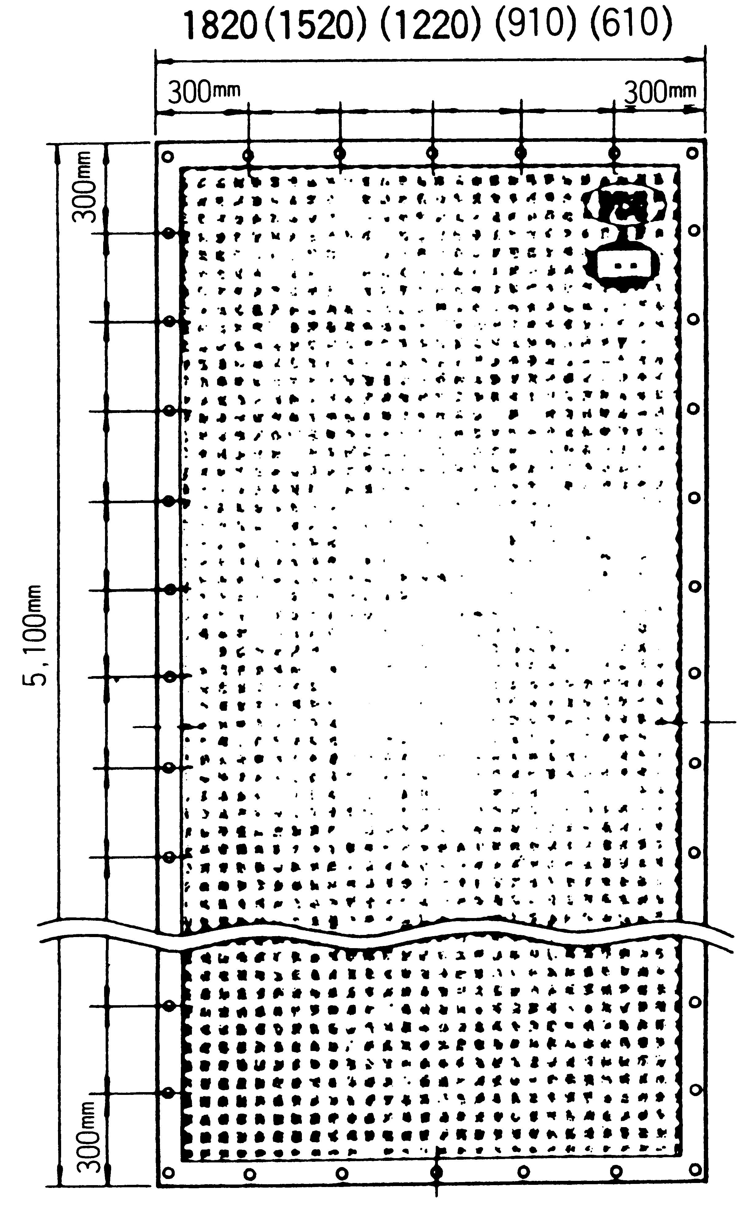 足場メッシュシート 防炎 2類2054 3.6×5.4 5枚 450ピッチ 工事現場用。