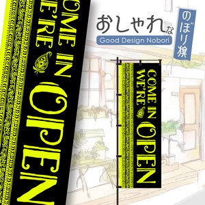 蛍光色:イエロー OPEN オープン 営業中 のぼり旗 おしゃれ のぼり オリジナルデザイン 1枚から購入可能HATAYA-ハタヤ-おしゃれなのぼり旗 看板 専門店。