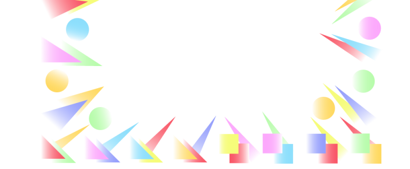 図形のフレーム 飾り枠 、カラフルなドット・三角・四角の組み合わせのデザインフレーム 飾り枠 Decome。