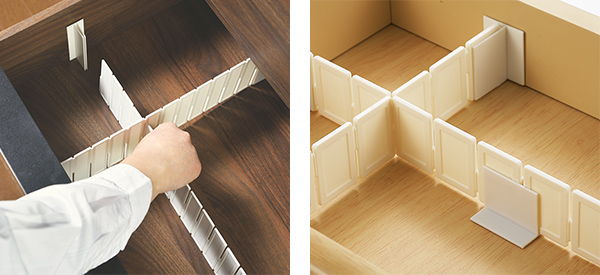 伸縮できる仕切り板 L8111チェスト タンス 箪笥 衣装ケース 衣類ケース 洋服 衣類 収納 引き出し 整理 仕切り 伸縮 組み合わせ粘着ジェル付き 繰り返し使える 整理整頓 すっきり 分別 日本製住マイル。