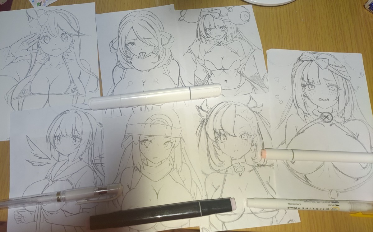 コピー用紙で絵の練習。安くて自由でモチベ上がる。あと捨てやすい。ばしでざ。