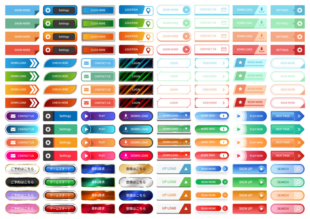 無料素材紹介 イラレで編集OK!WEBデザインで使えるボタン素材セットまとめイラレクリエイト。