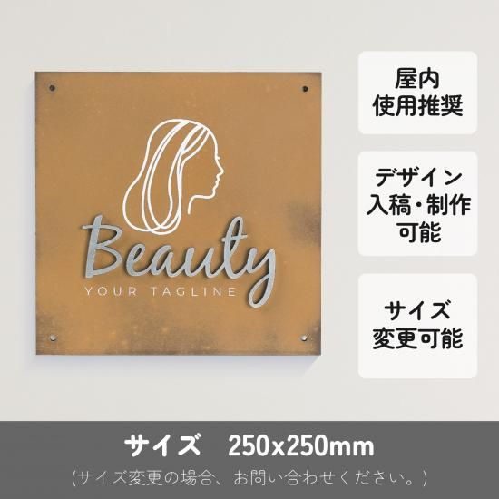 DS037 錆塗装 切り文字付き デザイン看板 250x250 おしゃれ デザイン 看板作成 オリジナル看板 デザイン無料 フルカラー印刷 店舗看板ビンテージ サビ塗装 - signjapan。