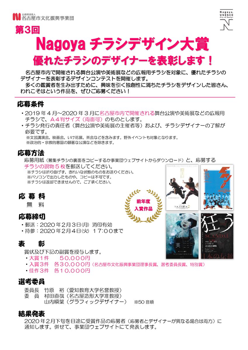 Nagoyaチラシデザイン大賞名古屋市文化振興事業団。