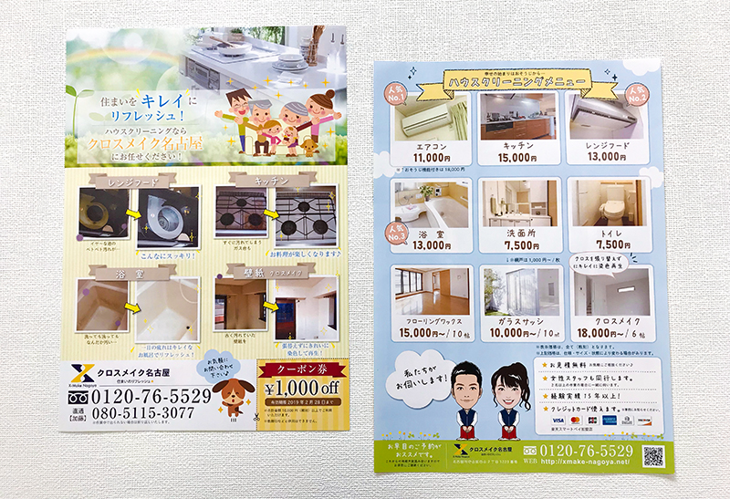 名古屋のハウスクリーニング屋さんのチラシながくてデザイン制作実績。