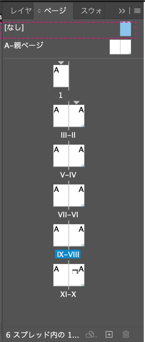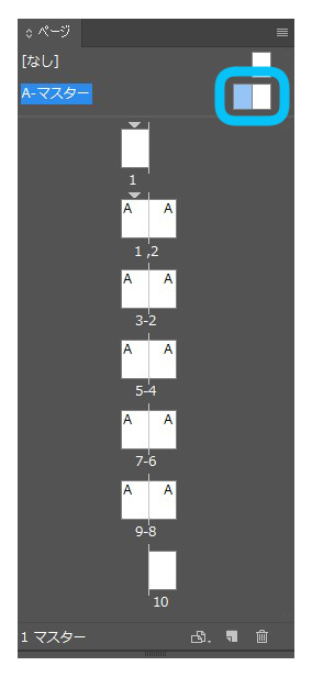 InDesignのページパネルでページの上に付いている黒い下向き三角マークはなんですか。
