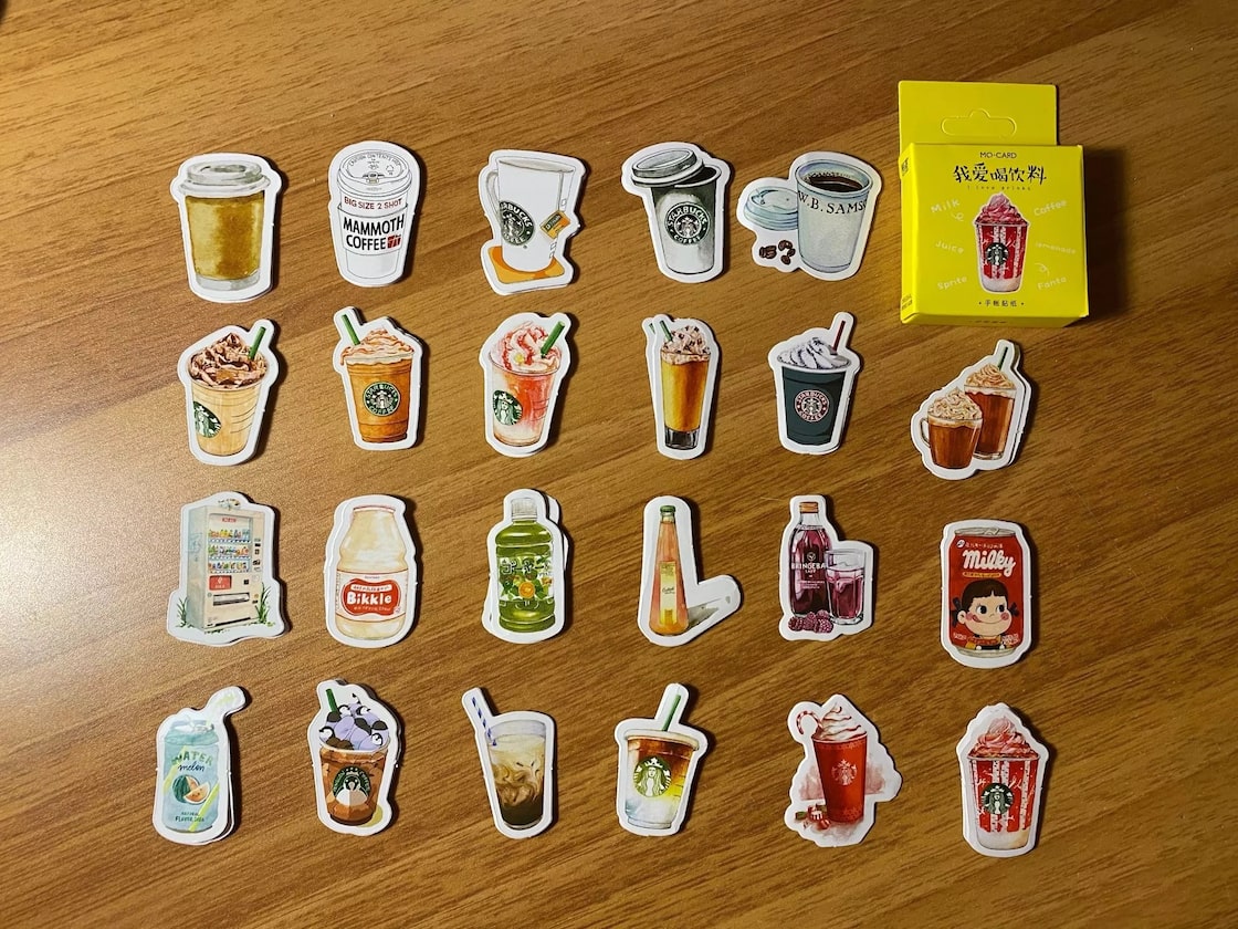 Starbucks-like stickers 46枚 スタバ 風 シール パック スターバックス ステッカー かわいい 中国 雑貨Pay ID。