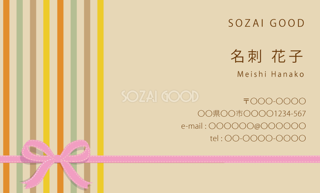 かわいい名刺デザイン リボンイラスト無料テンプレート82451素材Good。