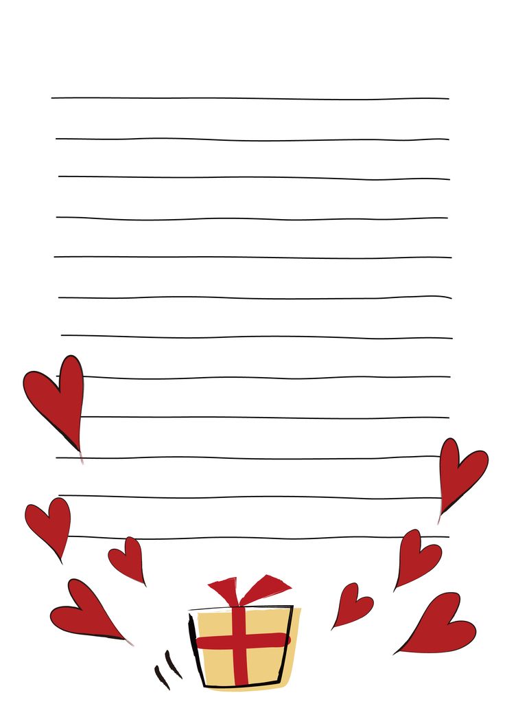 便箋テンプレート「ハートとプレゼント」ダウンロードかわいい無料イラスト 印刷素材.net 17。